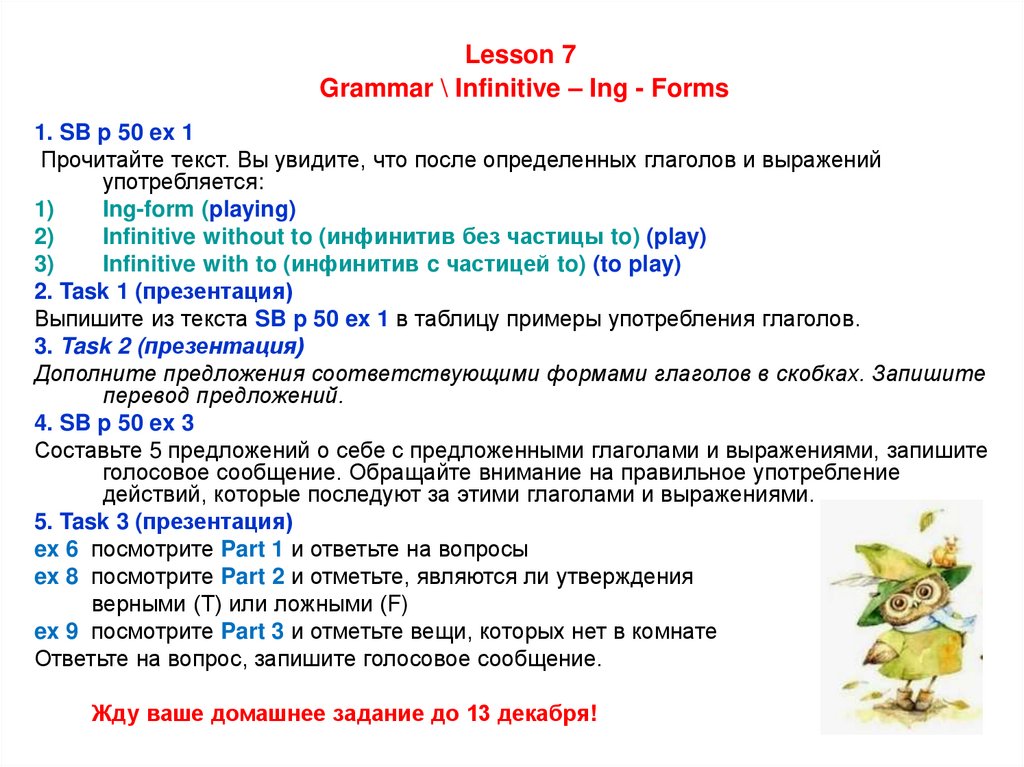 1. Lesson 7 Grammar \ Infinitive – Ing - Forms