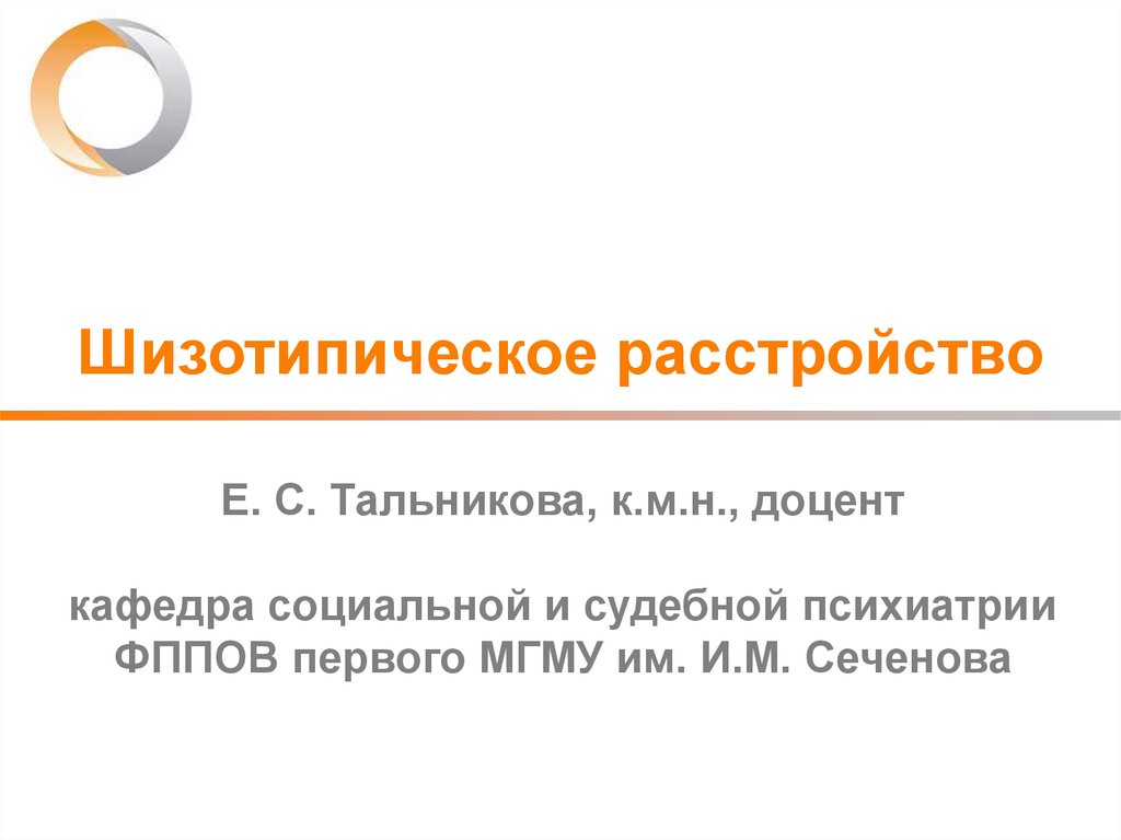 Е. С. Тальникова, к.м.н., доценткафедра социальной и судебной психиатрии