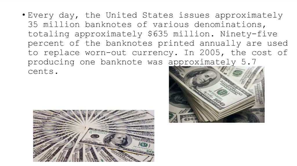 • Every day, the United States issues approximately35 million banknotes of various denominations,