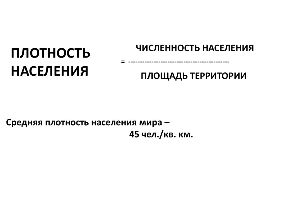 Средняя плотность населения мира –