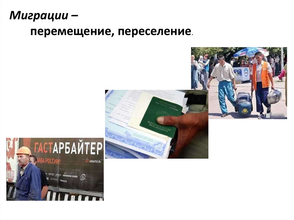 Миграции –перемещение, переселение.