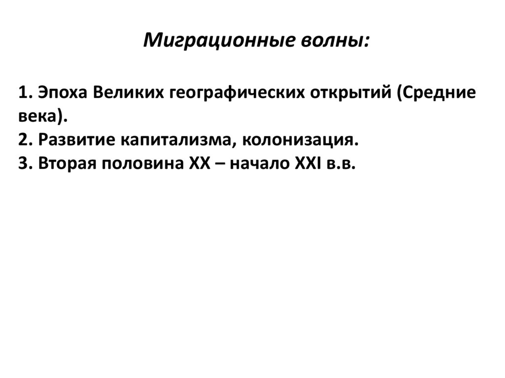 Миграционные волны:1. Эпоха Великих географических открытий (Средние