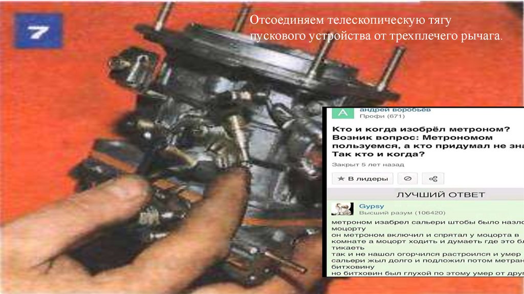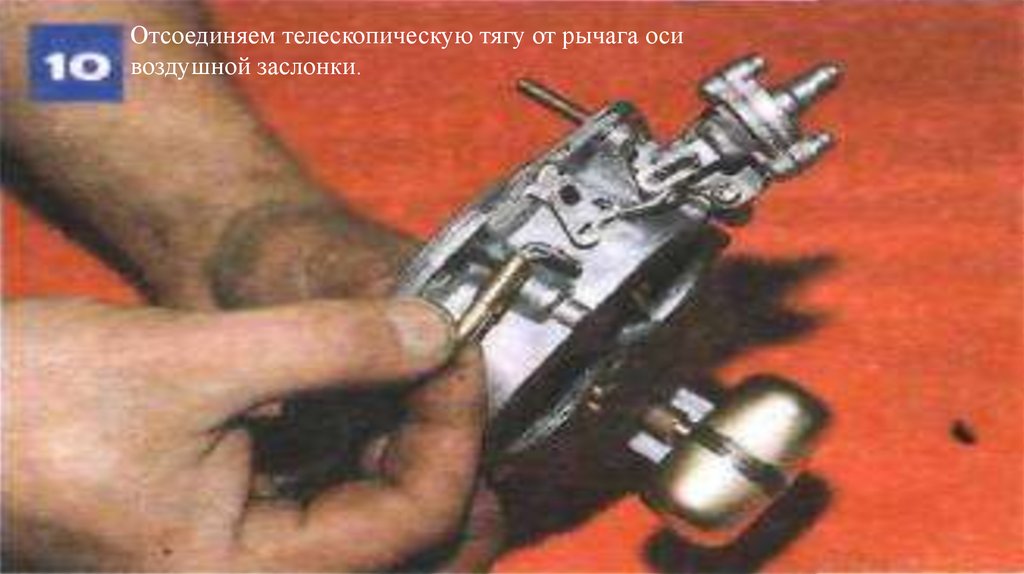 Отсоединяем телескопическую тягу от рычага осивоздушной заслонки.