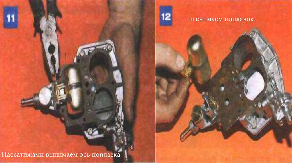 ...и снимаем поплавок.Пассатижами вынимаем ось поплавка...