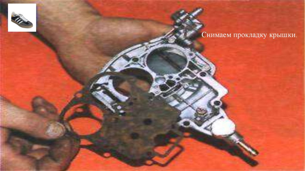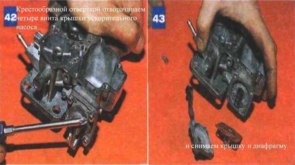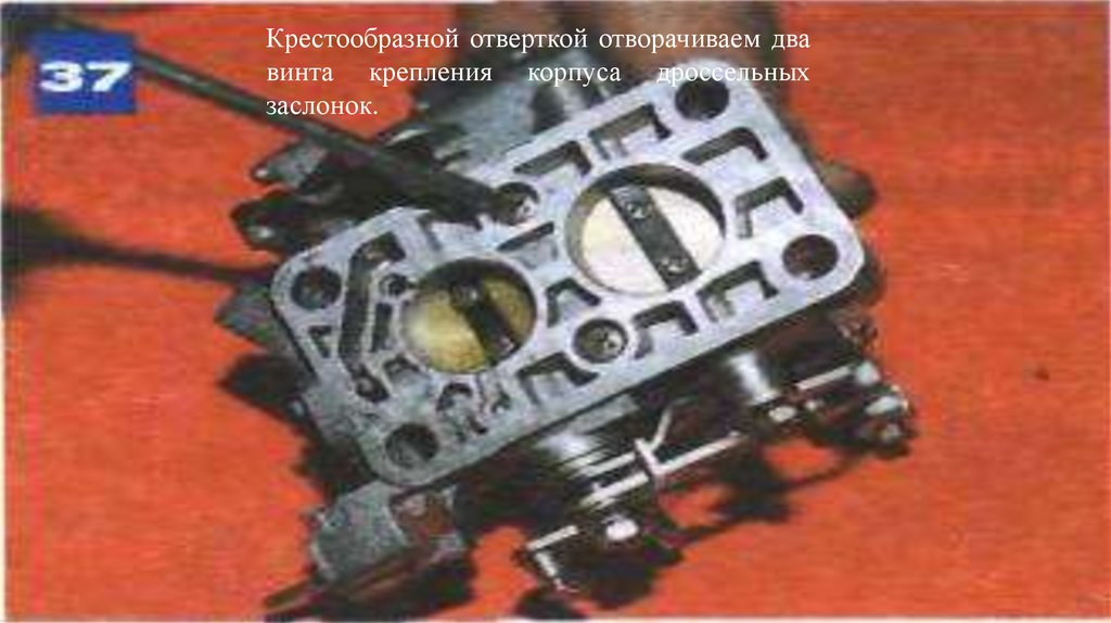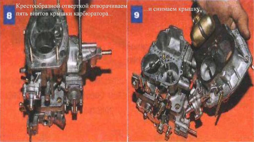 Крестообразной отверткой отворачиваемпять винтов крышки карбюратора...