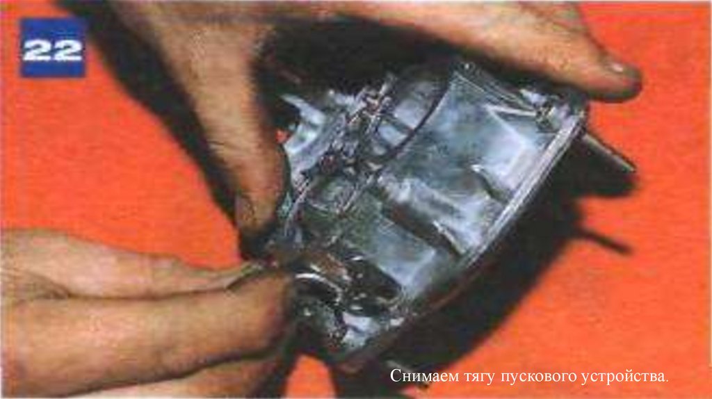 Отсоединяем телескопическую тягупускового устройства от трехплечего рычага.