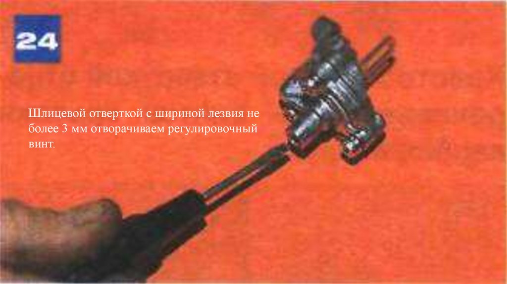 Шлицевой отверткой с шириной лезвия неболее 3 мм отворачиваем регулировочный