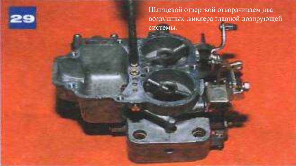 Шлицевой отверткой отворачиваем двавоздушных жиклера главной дозирующей