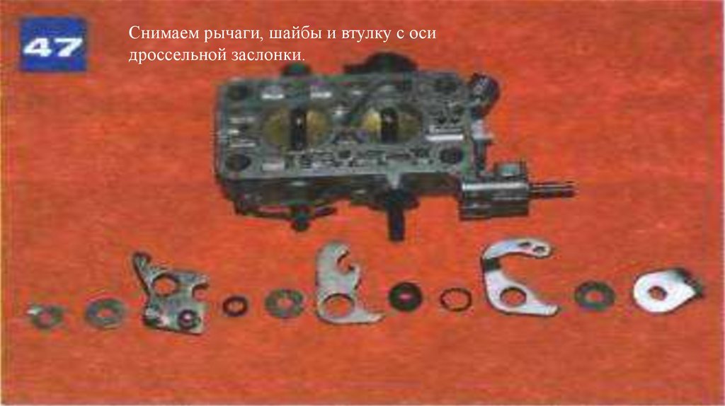 Снимаем рычаги, шайбы и втулку с осидроссельной заслонки.