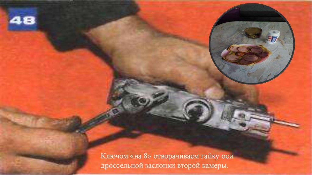 Ключом «на 8» отворачиваем гайку осидроссельной заслонки второй камеры.