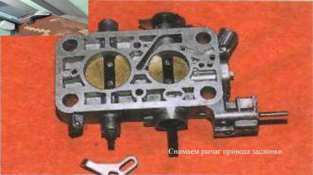 Расконтриваем гайку оси дроссельнойзаслонки первой камеры.
