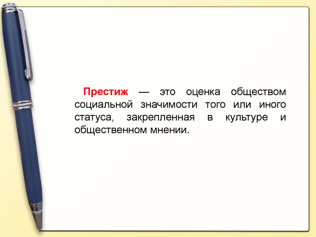 Престиж — это оценка обществомсоциальной значимости того или иного