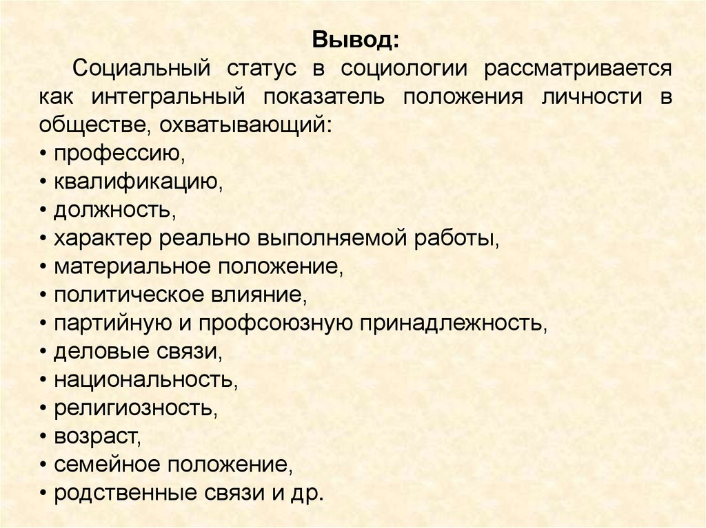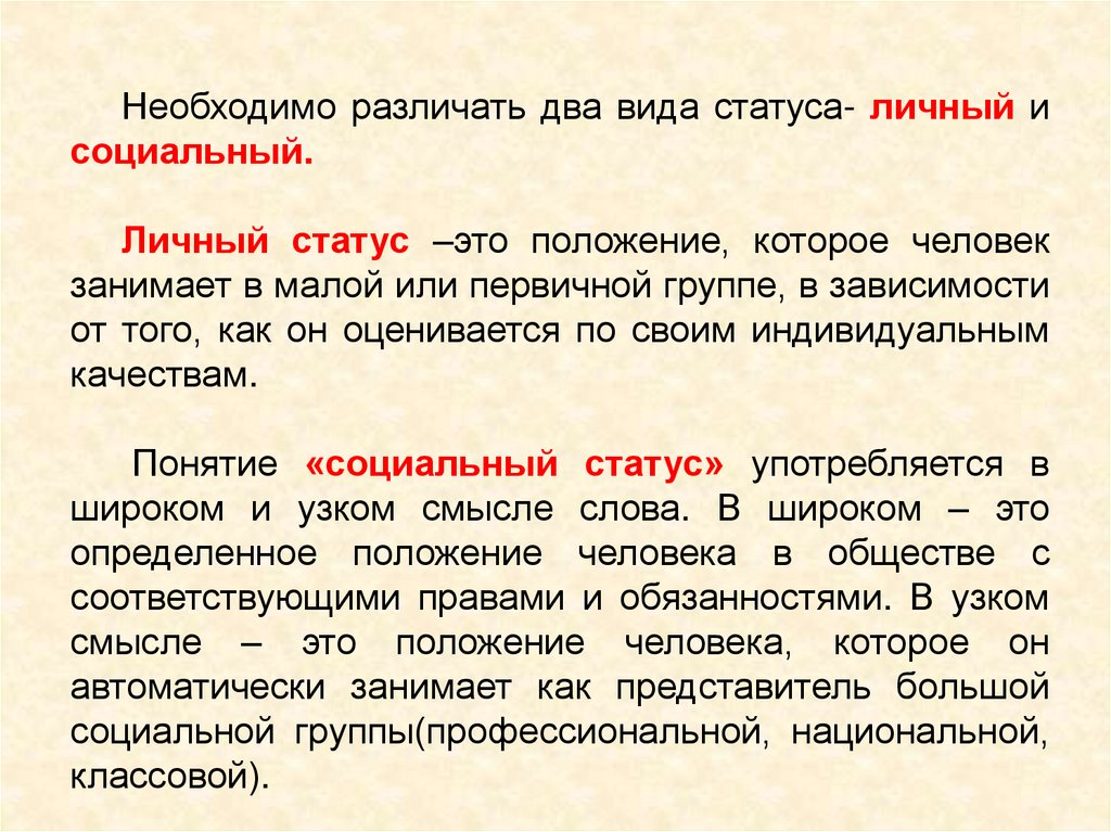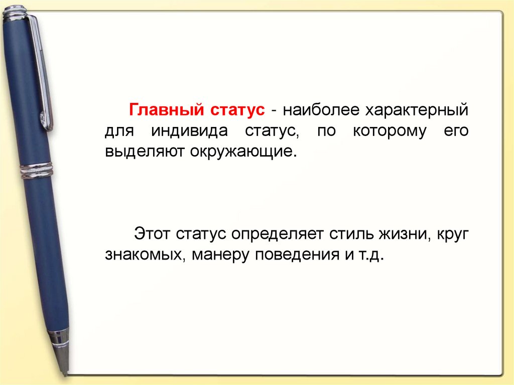 Главный статус - наиболее характерныйдля индивида статус, по которому его
