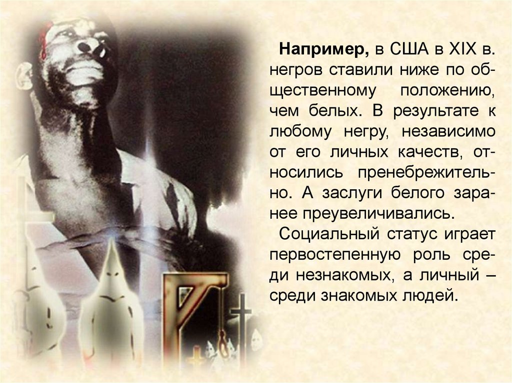 Например, в США в XIX в.негров ставили ниже по общественному положению,
