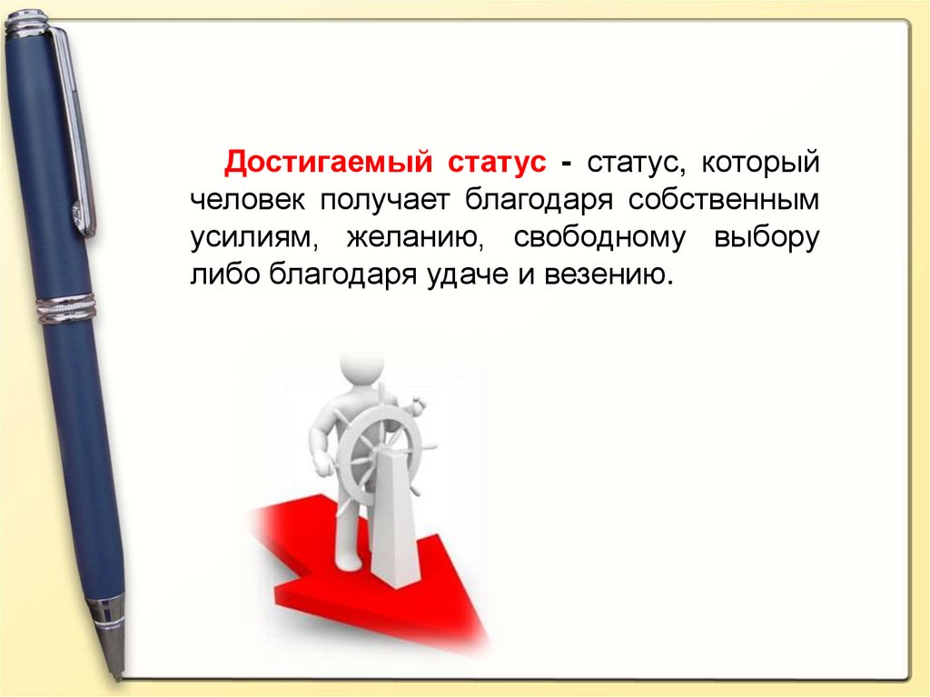 Достигаемый статус - статус, которыйчеловек получает благодаря собственным