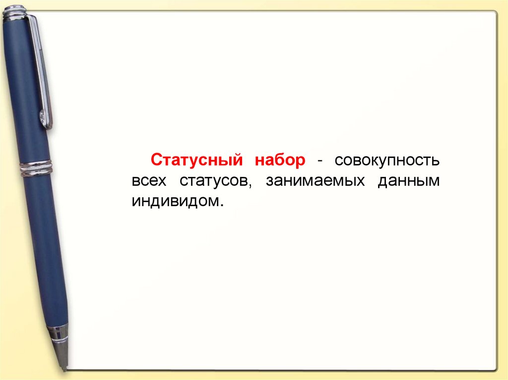 Статусный набор - совокупностьвсех статусов, занимаемых данным
