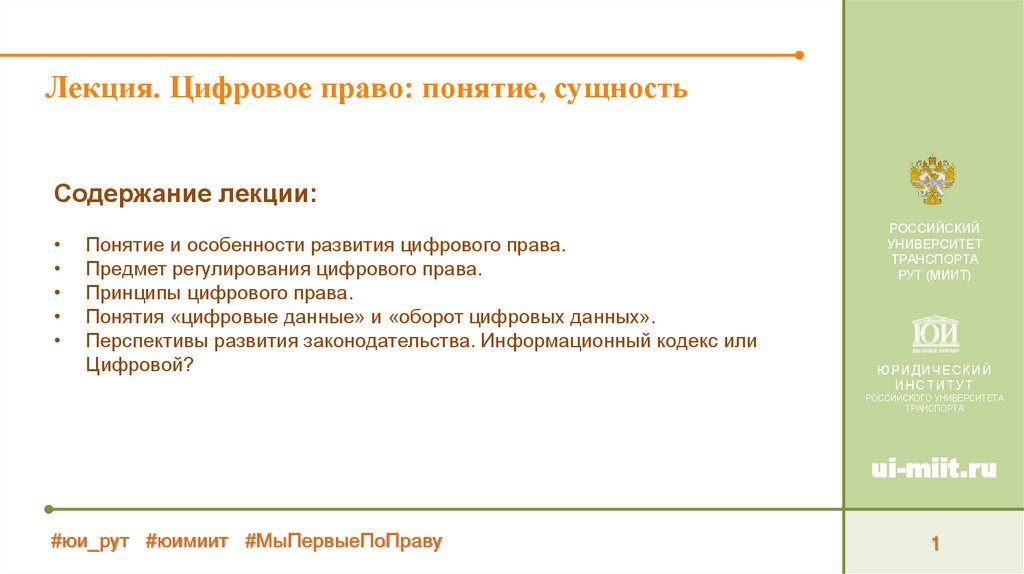Лекция. Цифровое право: понятие, сущностьСодержание лекции: