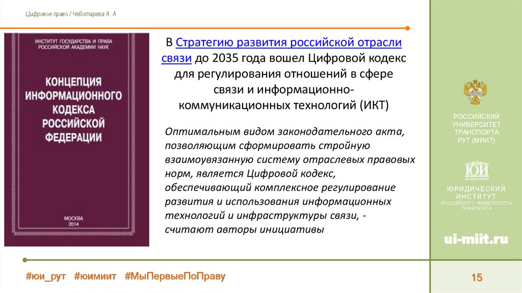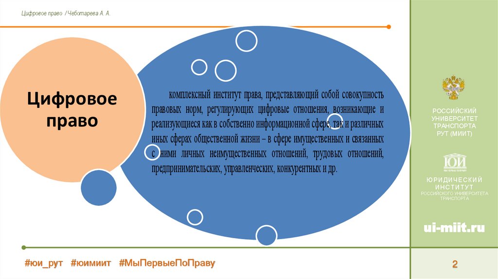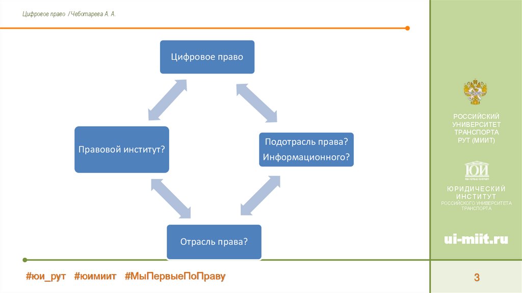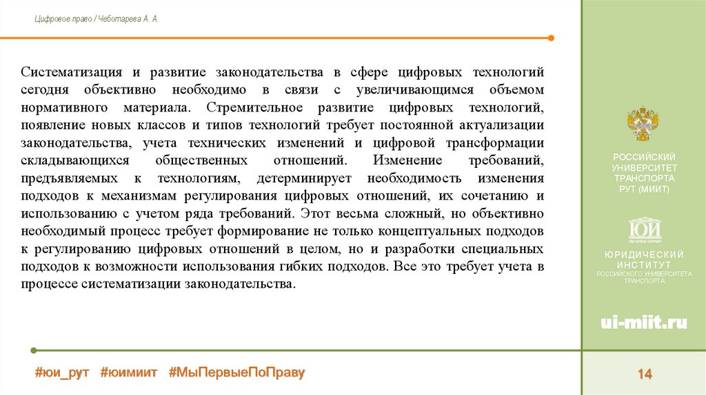 Цифровое право / Чеботарева А. А.Систематизация и развитие законодательства в сфере цифровых технологий