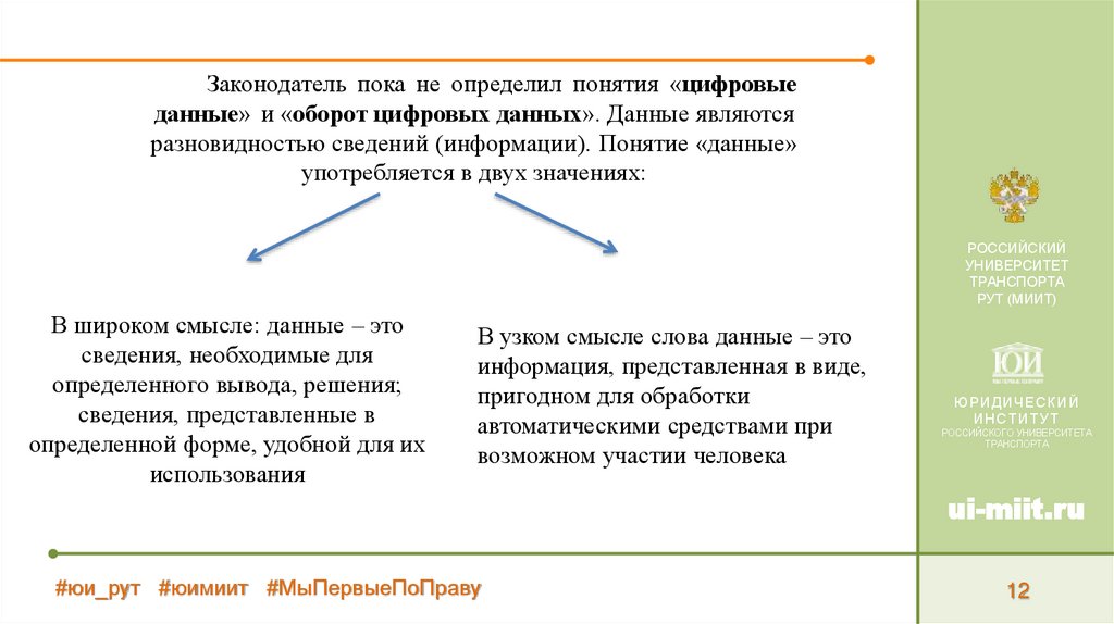 Законодатель пока не определил понятия «цифровыеданные» и «оборот цифровых данных». Данные являются
