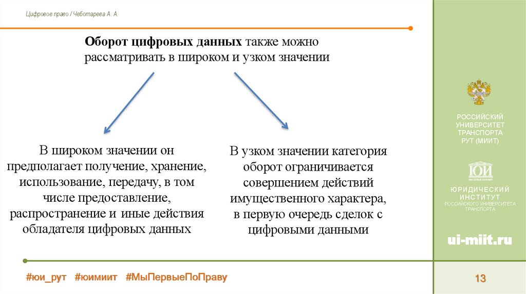 Цифровое право / Чеботарева А. А.Оборот цифровых данных также можно