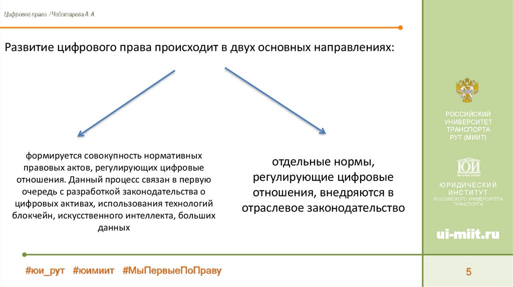 Развитие цифрового права происходит в двух основных направлениях:РОССИЙСКИЙ