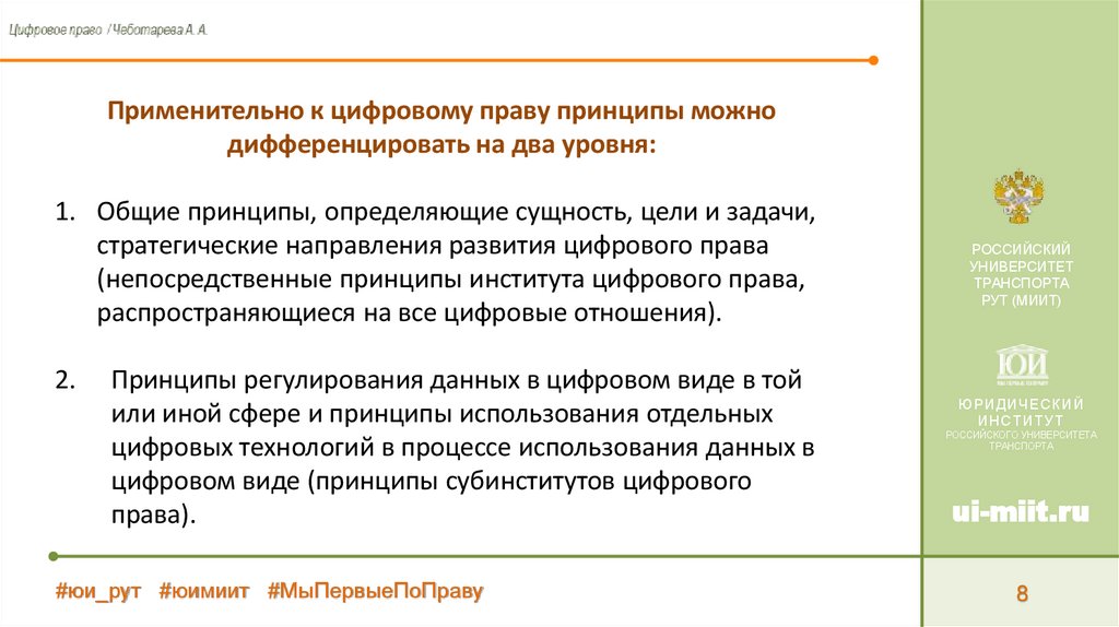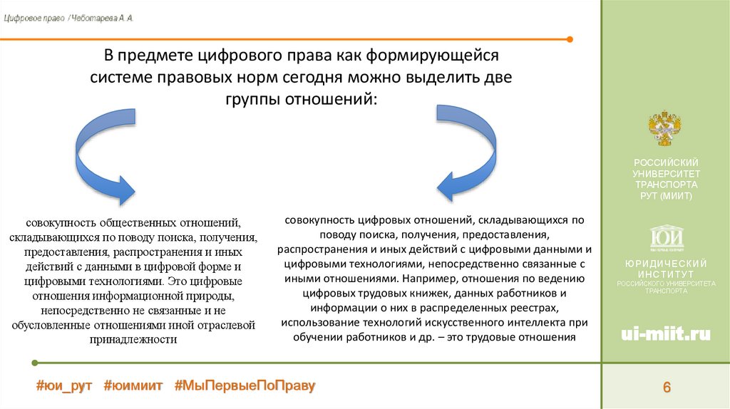 В предмете цифрового права как формирующейсясистеме правовых норм сегодня можно выделить две