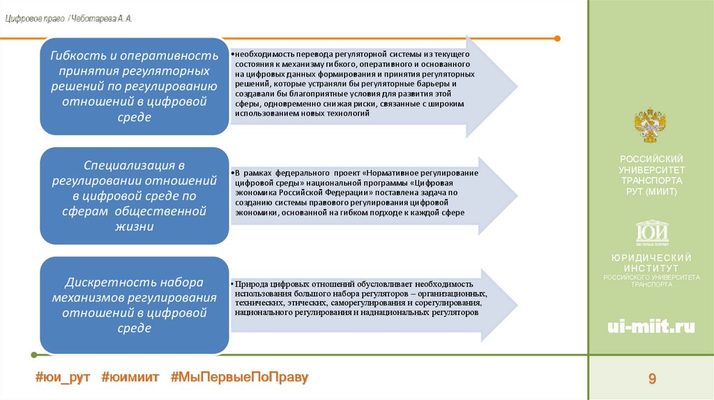 к регулированию цифровых отношений в целом, но и разработки специальных