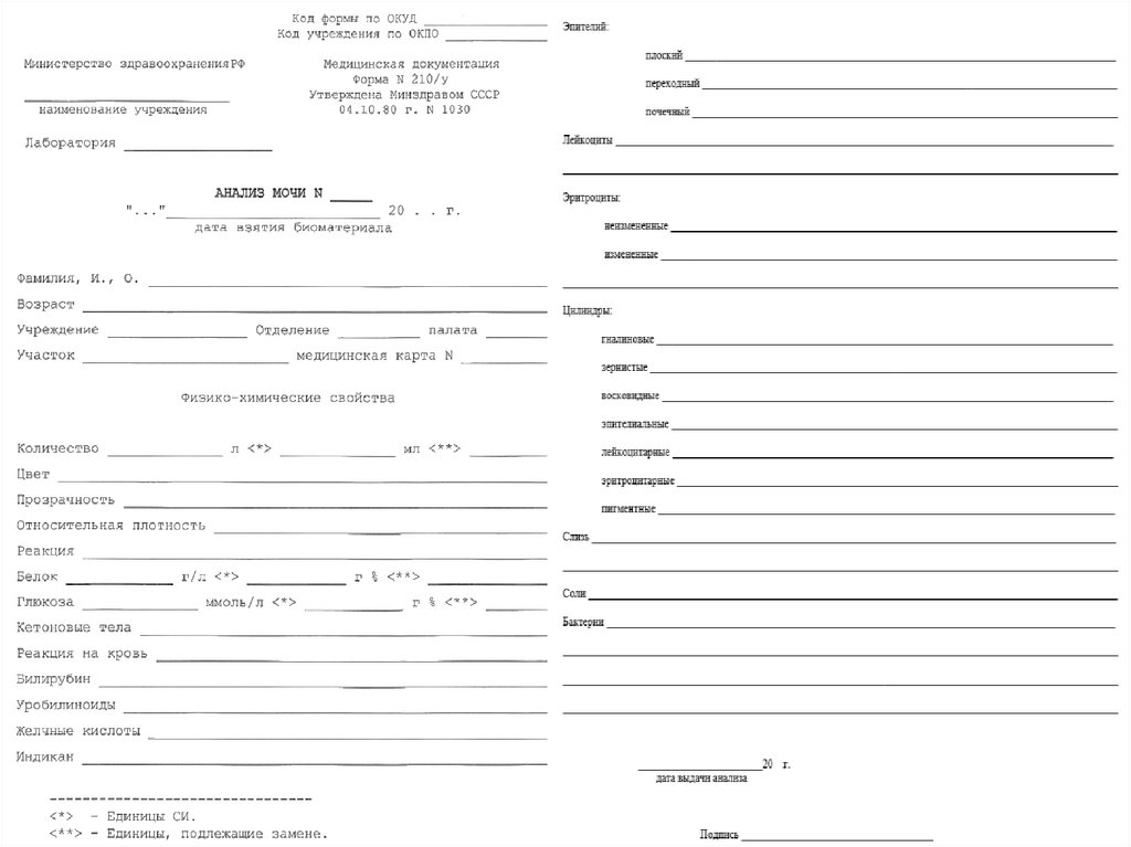 ► Предпочтительно использовать для общего анализа первую утреннюю