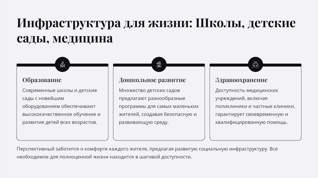 Инфраструктура для жизни: Школы, детскиесады, медицина