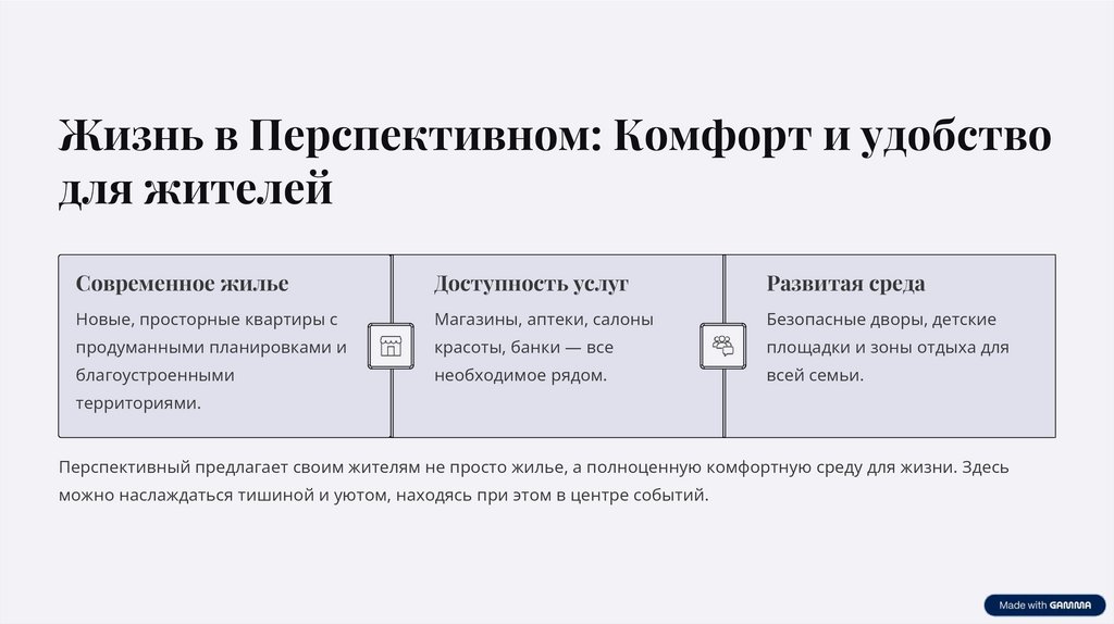 Жизнь в Перспективном: Комфорт и удобстводля жителей