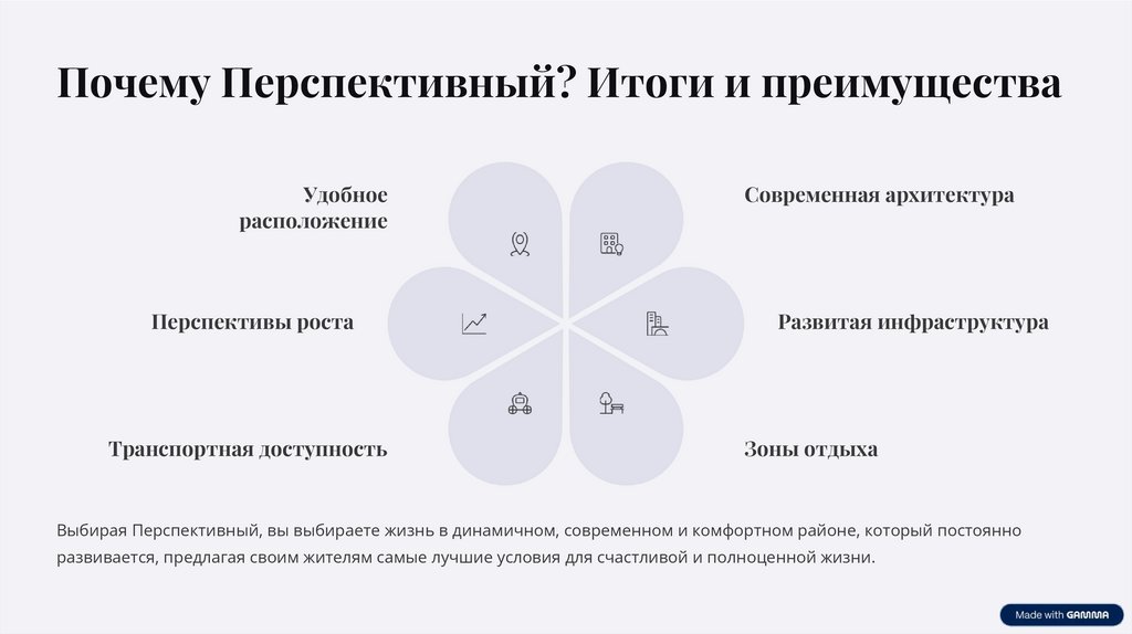 Выбирая Перспективный, вы выбираете жизнь в динамичном, современном и комфортном районе, который постоянно