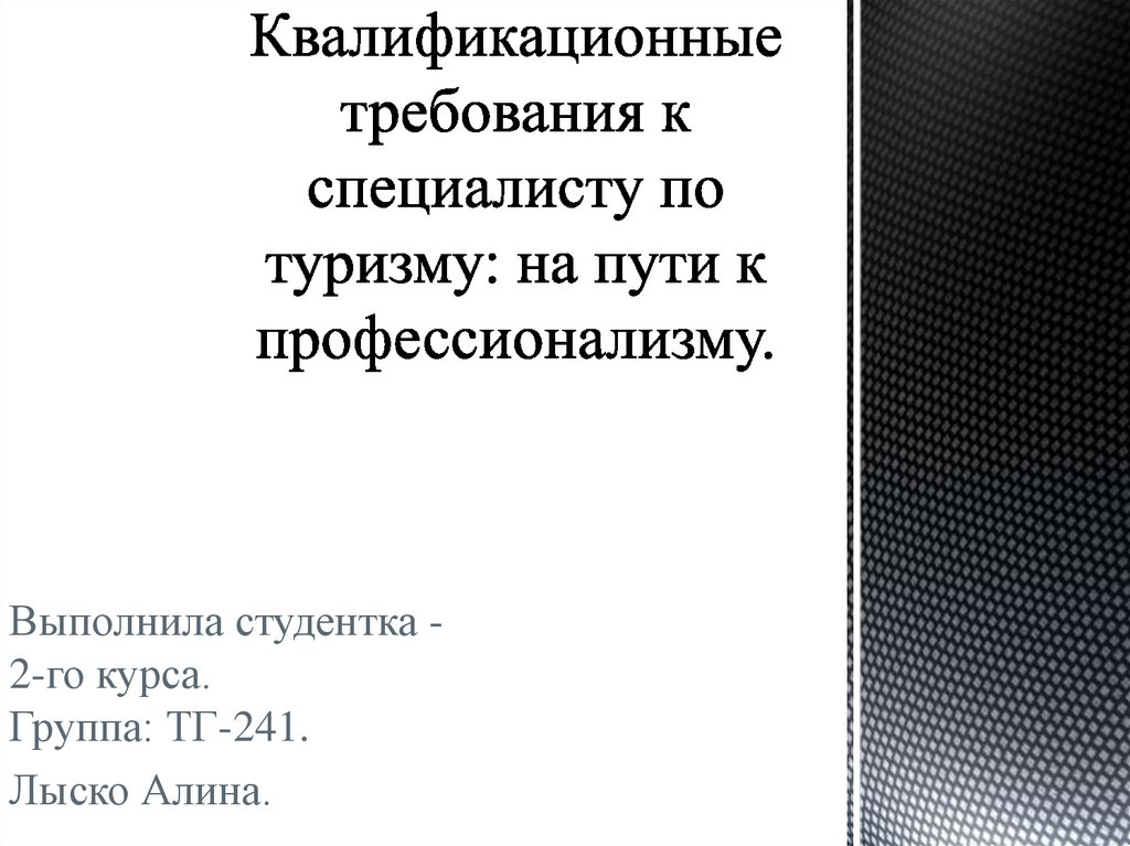 1. Квалификационные требования к специалисту по туризму: на пути к профессионализму.