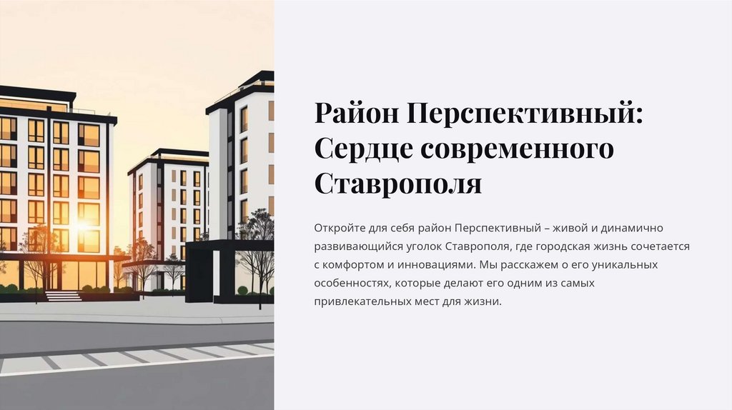 Выбирая Перспективный, вы выбираете жизнь в динамичном, современном и комфортном районе, который постоянно