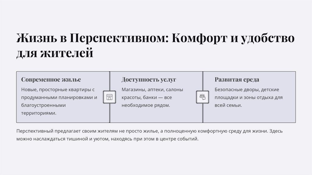 Жизнь в Перспективном: Комфорт и удобстводля жителей