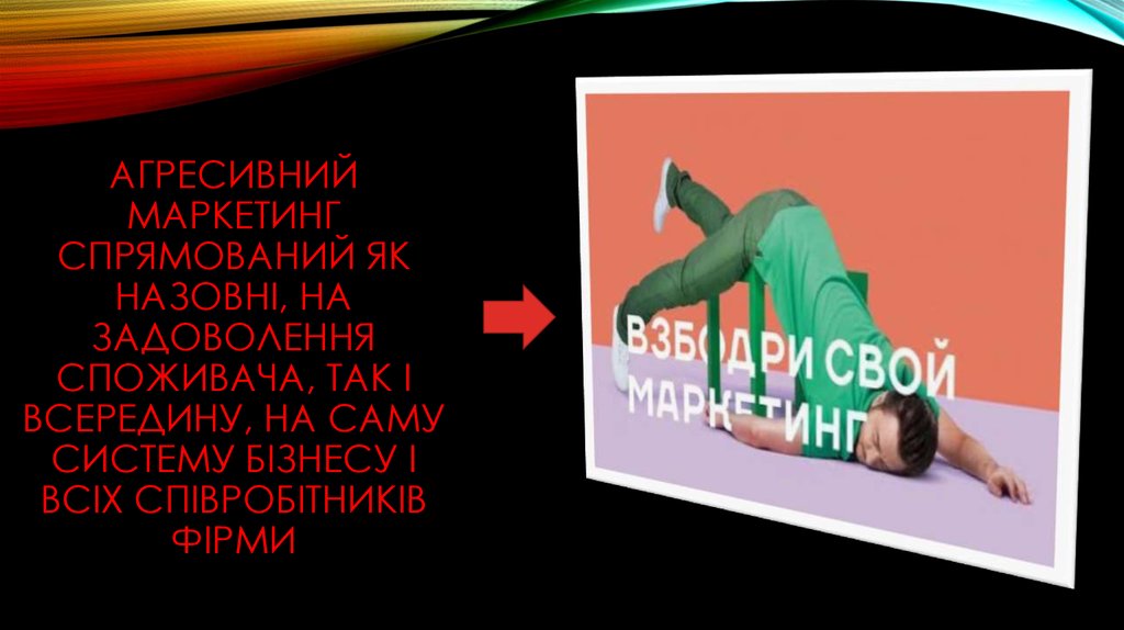 6. Агресивний маркетинг спрямований як назовні, на задоволення споживача, так і всередину, на саму систему бізнесу і всіх співробітників фірм