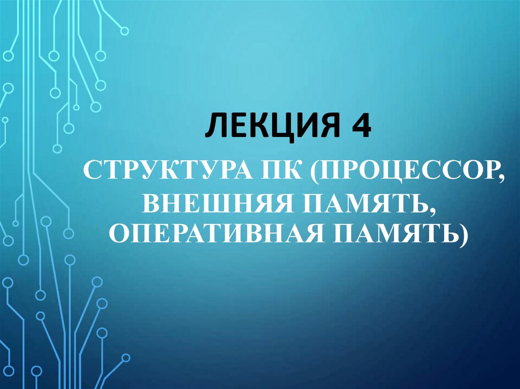 1. ЛЕКЦИЯ 4 СТРУКТУРА ПК (ПРОЦЕССОР, ВНЕШНЯЯ ПАМЯТЬ, ОПЕРАТИВНАЯ ПАМЯТЬ)