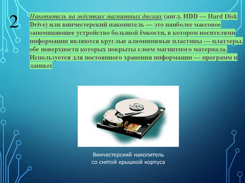 2Накопитель на жёстких магнитных дисках (англ. HDD — Hard Disk