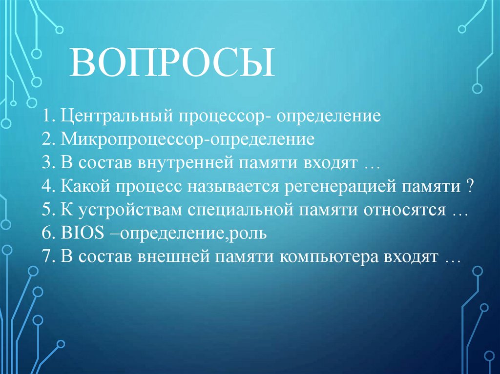 3. Микропроцессор – небольшая электронная схема, выполняющая все вычисления и обработку информации.