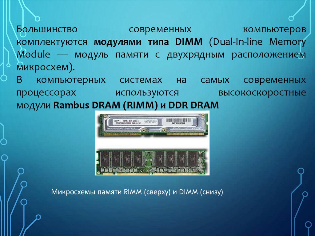 комплектуются модулями типа DIMM (Dual-In-line Memory