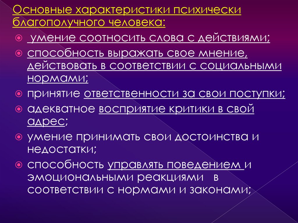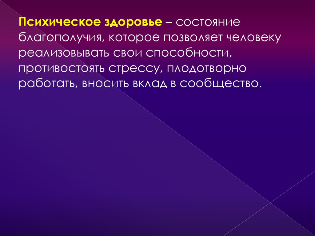 Психическое здоровье – состояниеблагополучия, которое позволяет человеку