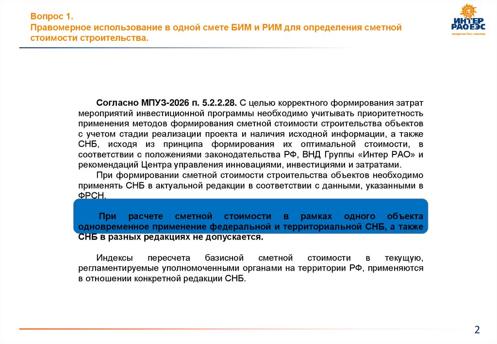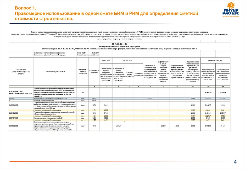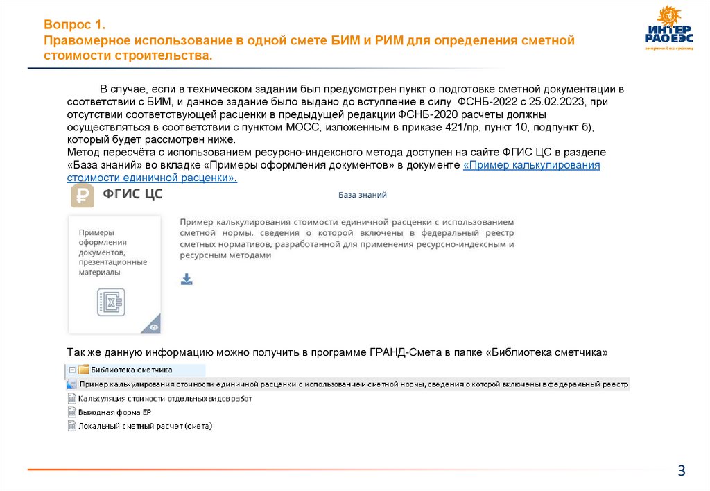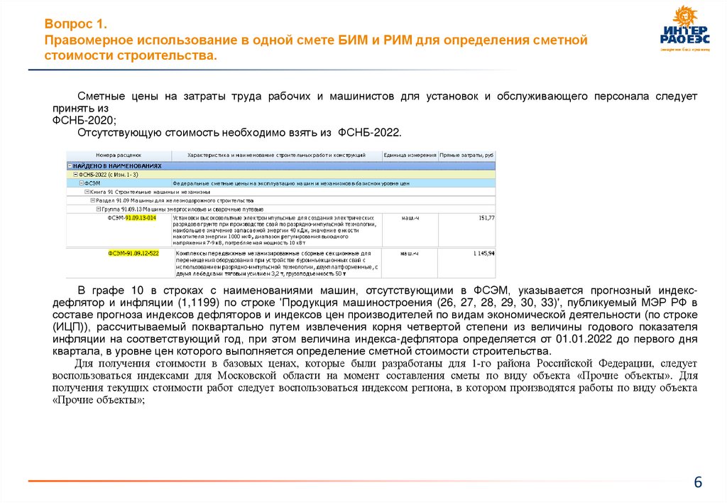 Вопрос 1.Правомерное использование в одной смете БИМ и РИМ для определения сметной