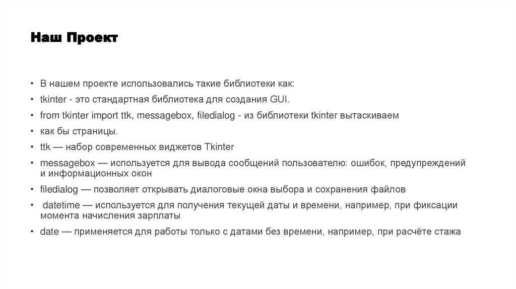 Наш Проект• В нашем проекте использовались такие библиотеки как: