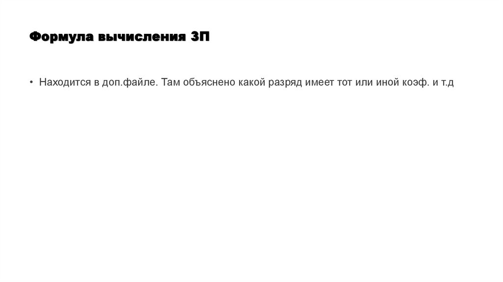 Формула вычисления ЗП• Находится в доп.файле. Там объяснено какой разряд имеет тот или иной коэф. и т.д