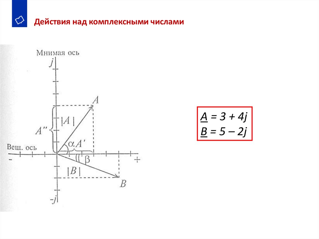 Действия над комплексными числамиКомплексное число A состоит из вещественной Re и мнимой Im частей: