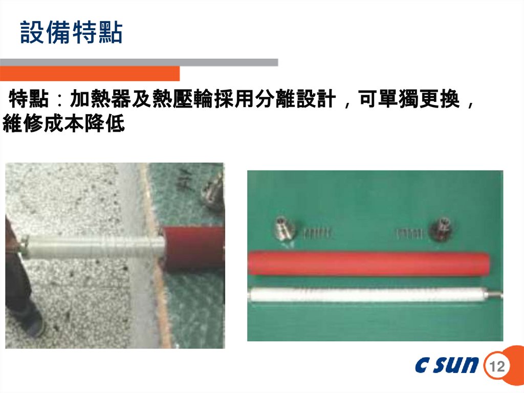 設備特點特點 加熱器及熱壓輪採用分離設計 可單獨更換