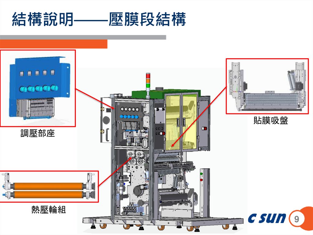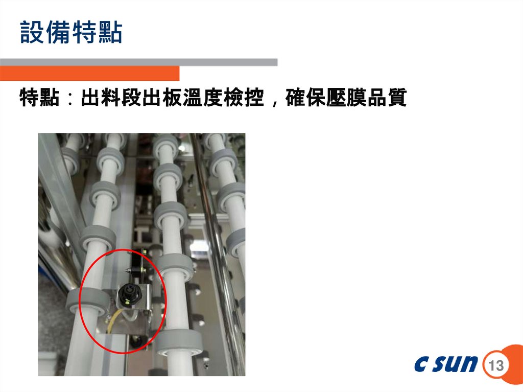 設備特點特點 出料段出板溫度檢控 確保壓膜品質