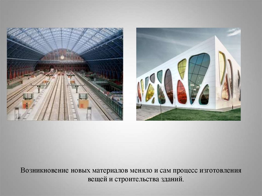 Возникновение новых материалов меняло и сам процесс изготовлениявещей и строительства зданий.