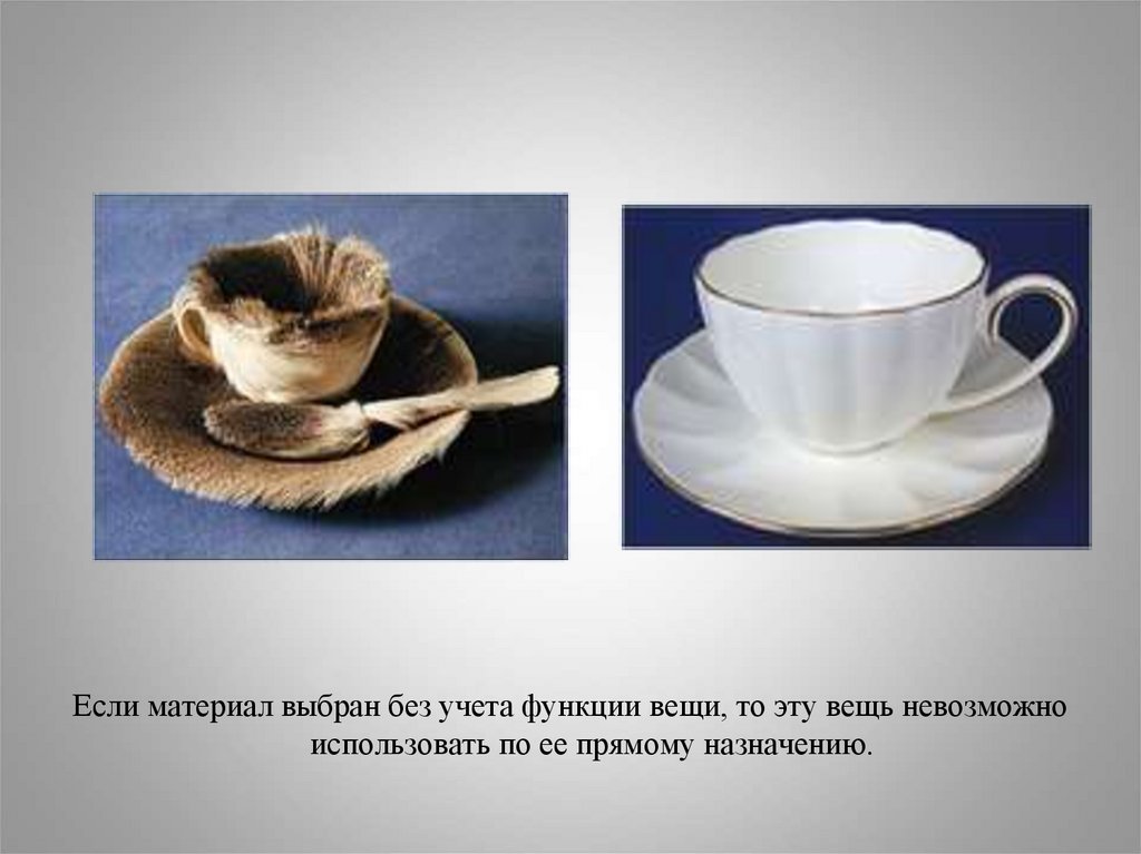Если материал выбран без учета функции вещи, то эту вещь невозможноиспользовать по ее прямому назначению.