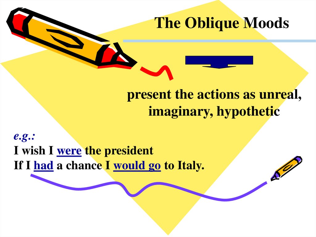 The Oblique Moodspresent the actions as unreal,