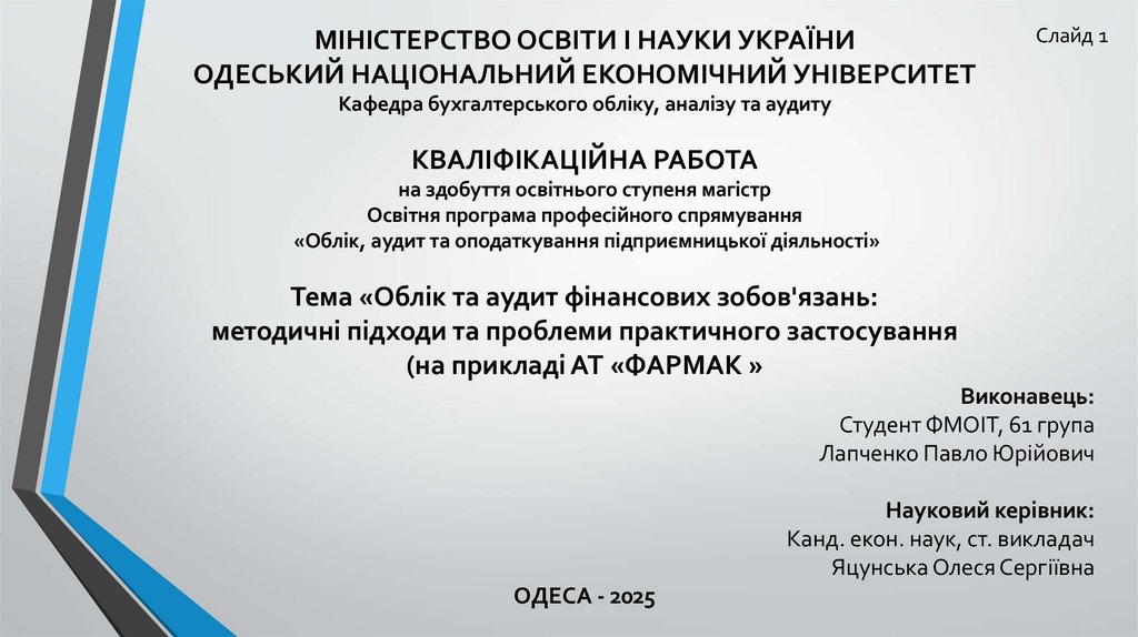 МІНІСТЕРСТВО ОСВІТИ І НАУКИ УКРАЇНИОДЕСЬКИЙ НАЦІОНАЛЬНИЙ ЕКОНОМІЧНИЙ УНІВЕРСИТЕТ